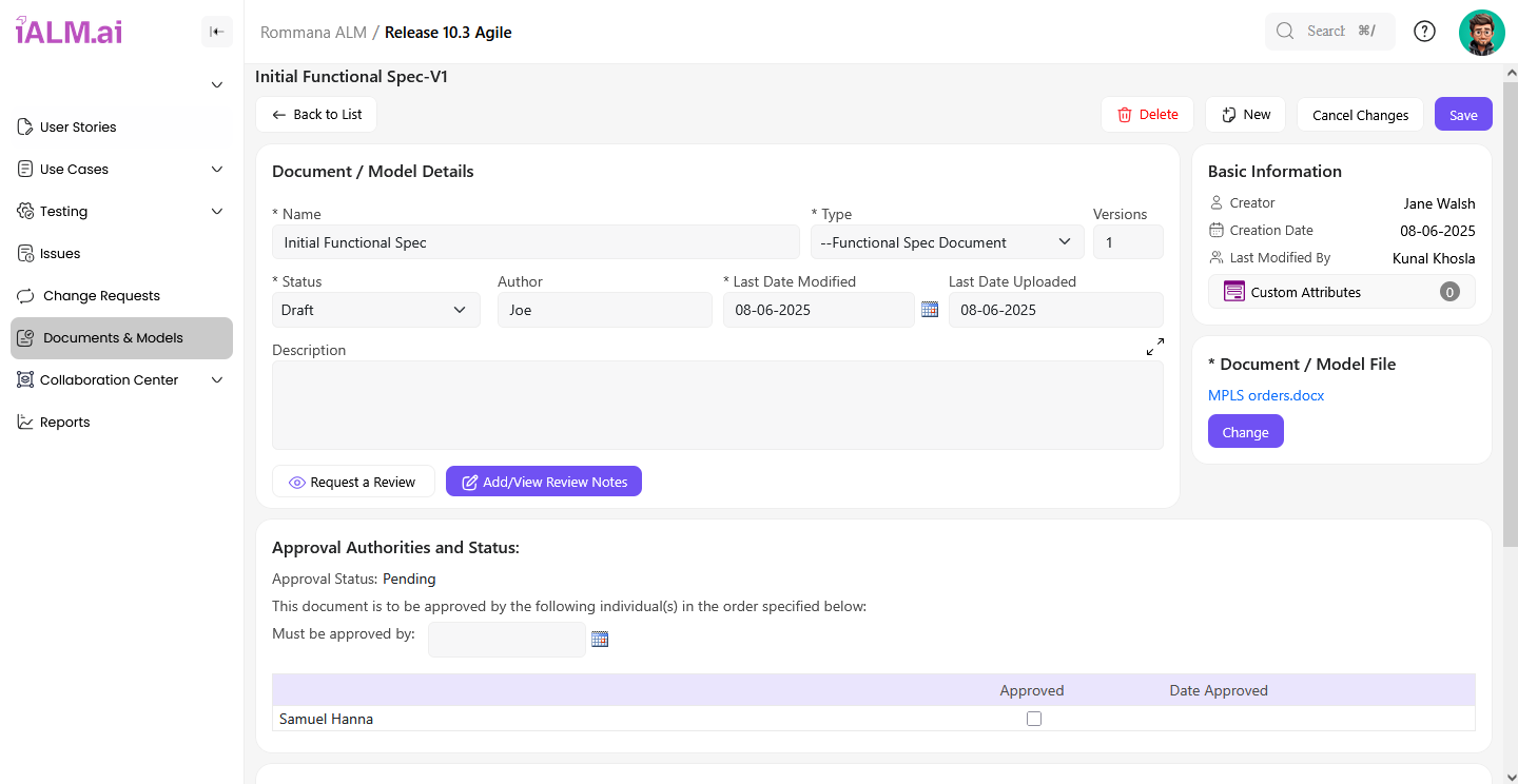 Streamline document creation, versioning, review, and approval with iALM.ai Document Management Tools. Integrate seamlessly with your user stories and requirements for unparalleled project clarity and efficiency.