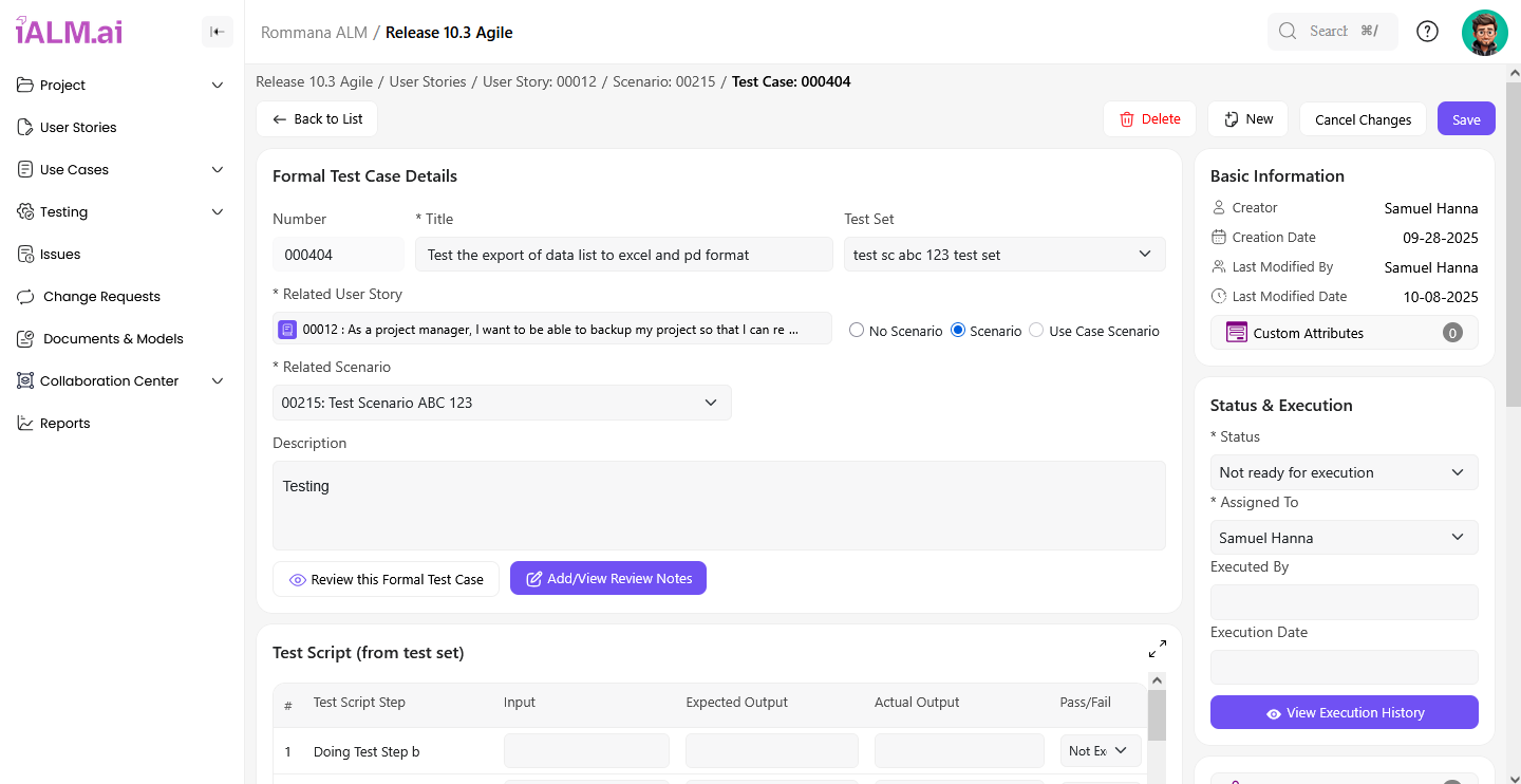 Leverage the power of artificial intelligence to revolutionize your software testing lifecycle. ¡ALM.ai provides comprehensive tools for automated scenario generation, intelligent risk assessment, and seamless test management, ensuring higher quality and faster delivery.
